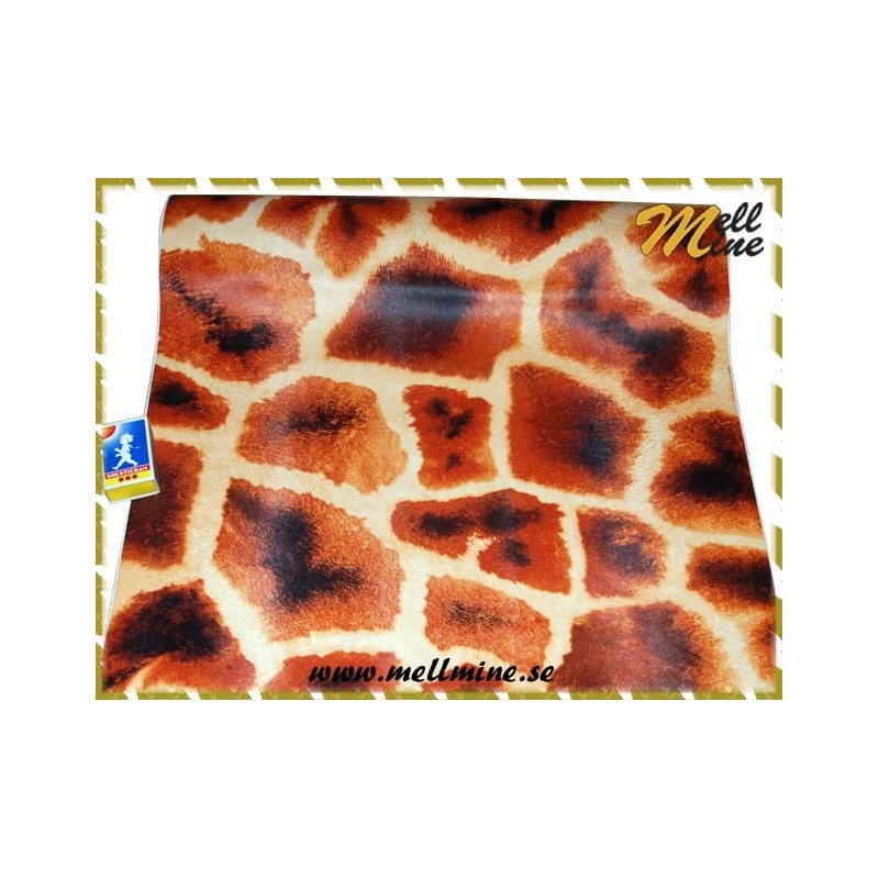 Giraffmönstrad plast i beigegult, orange och svart.